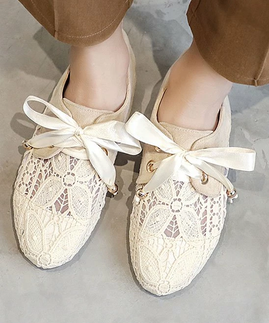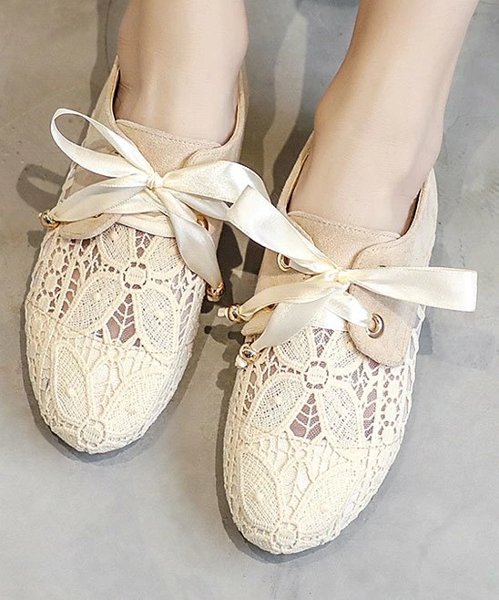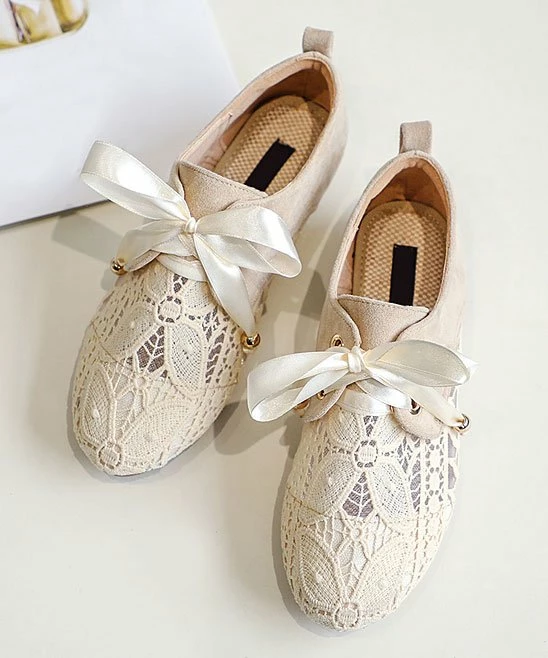 Look lovely in these sheer lace flat featuring sheer lace detail and bow accents. The textured sole gives your strides secure traction.