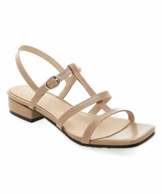 Tiers of straps and an ankle-securing slingback give a summery style to these sandals featuring a trendy square toe and mini heel for subtle lift.