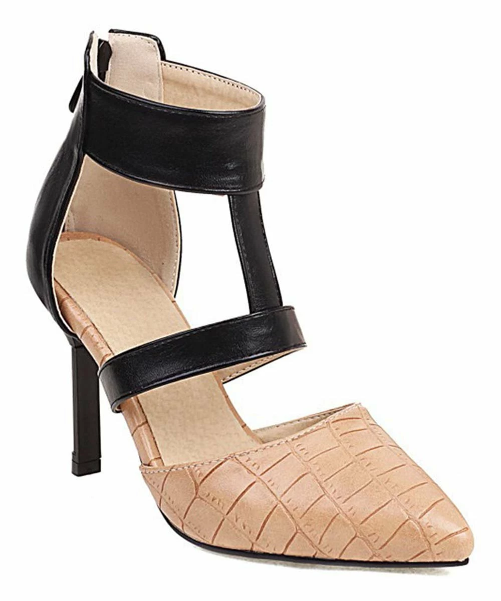 Elevate your looks for work or after-hours fun with this pump that shows off a contrast T-strap and tall stiletto heel. A back zip closure makes it simple to get on and off.