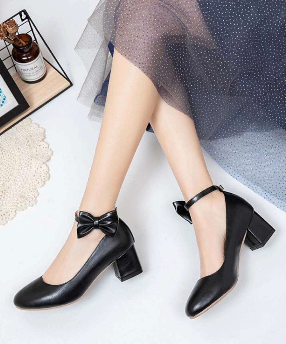 Bring feminine flair to your ensemble with this pair of classic Mary Janes showcasing a bow-decorated ankle buckle.