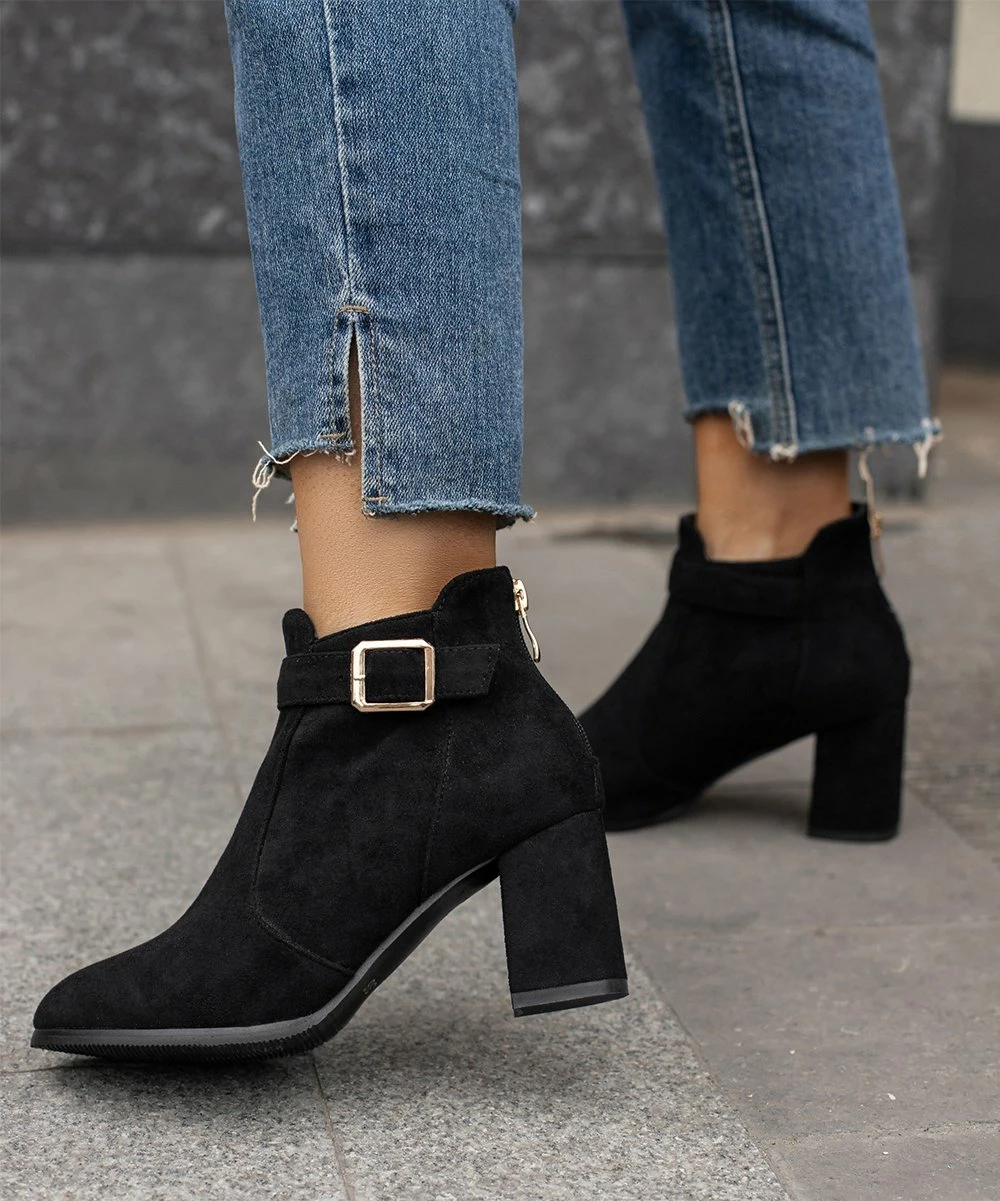 Step up your footwear collection with these ankle boots featuring buckle accents.