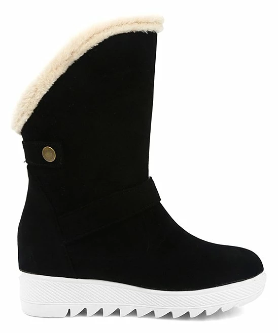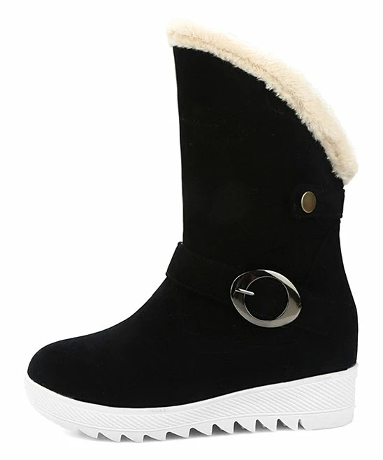 Add cozy chic style to your casual looks thanks to this buckle-adorned boot lined with fuzzy fabric and set on a sturdy wedge heel.