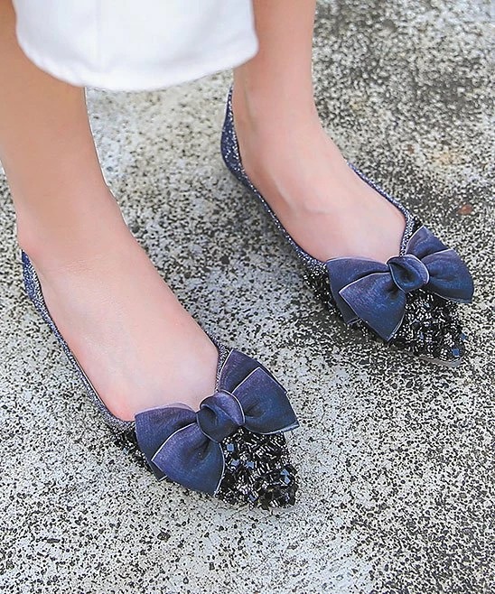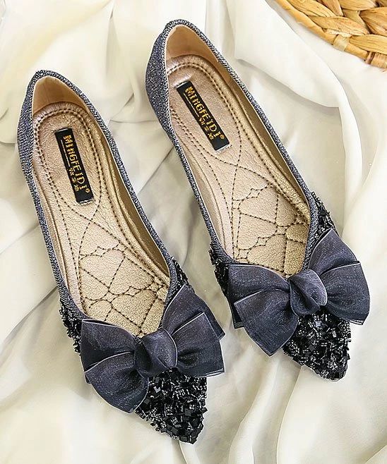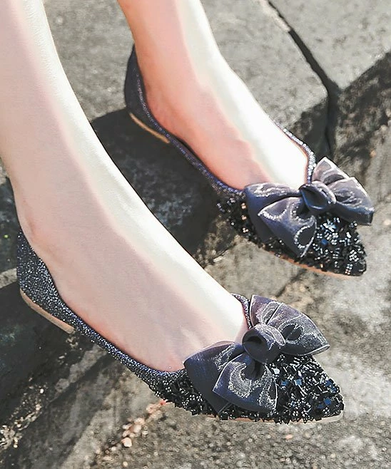 Add a little sparkle to your step with these sequin-adorned flats featuring a bold bow topping the pointed toe. The rubber sole keeps your steps slip-resistant.