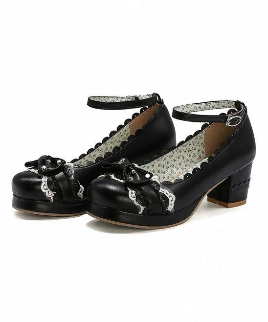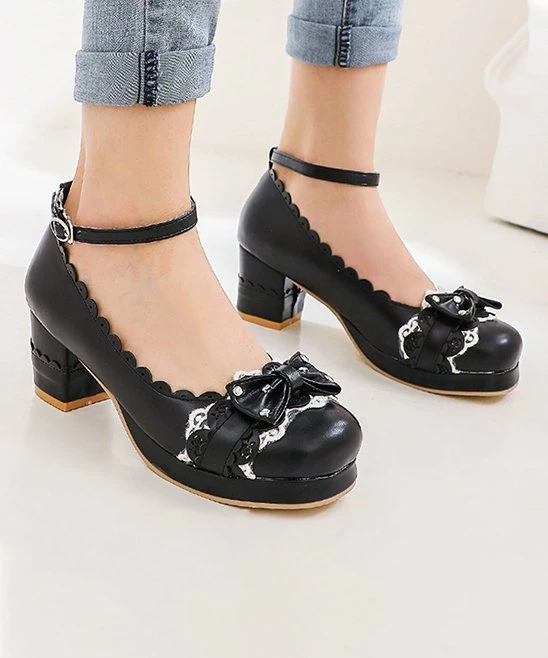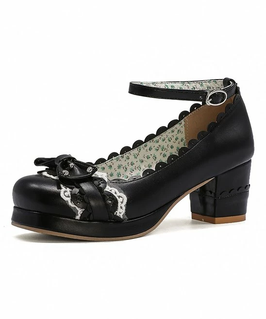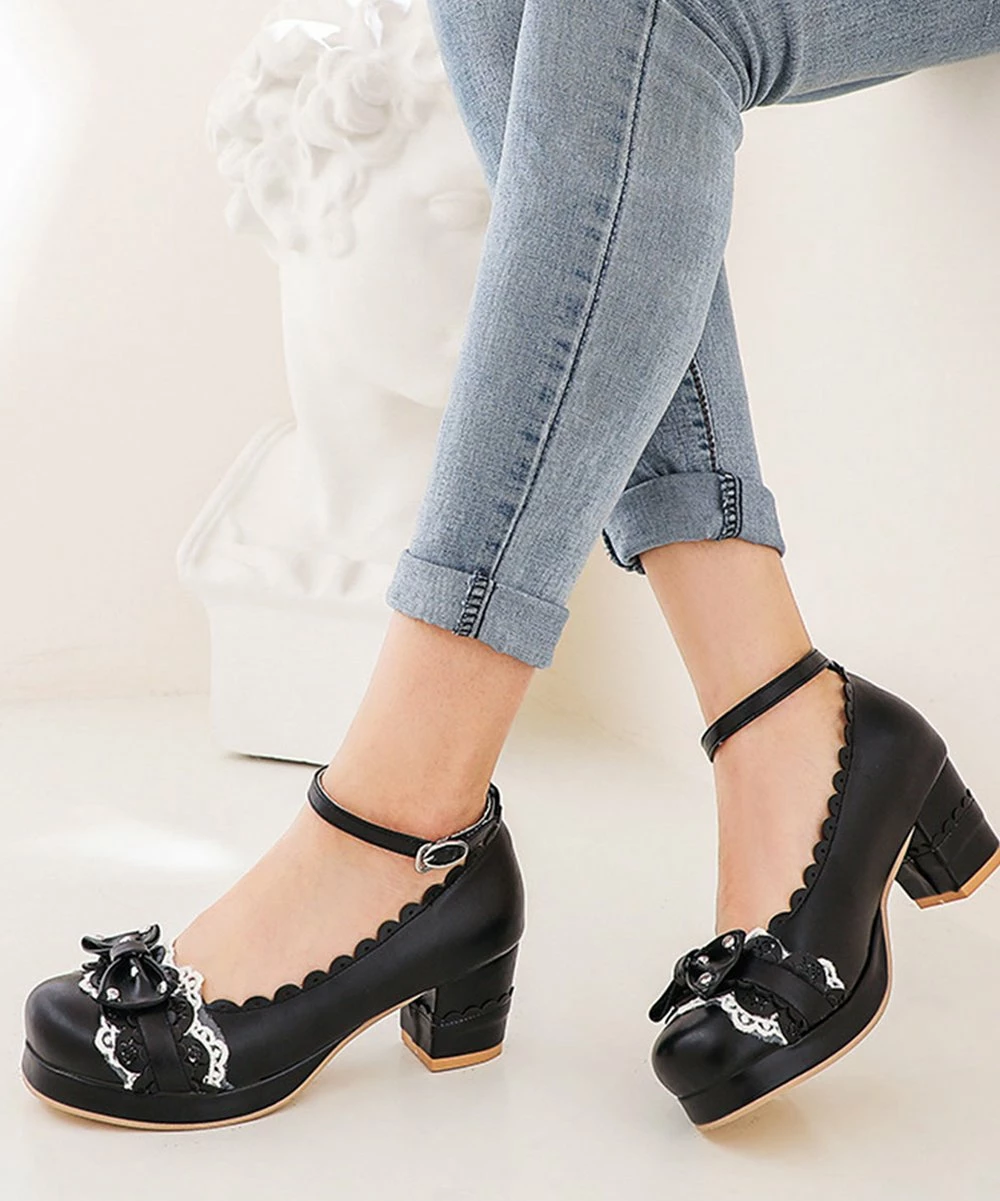Add some retro style to your wardrobe with these sweet pumps that have a scalloped edge and an ankle strap.