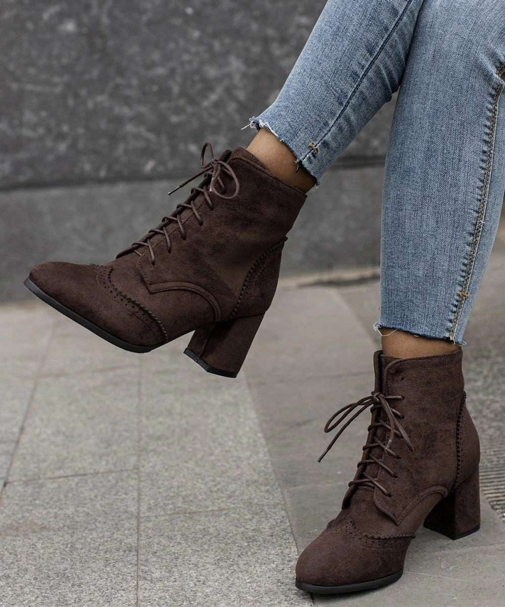 Step up your footwear collection with these ankle boots featuring secure lace-up closure.