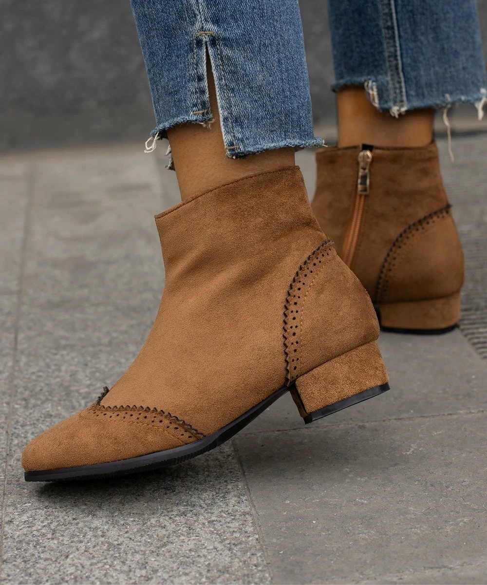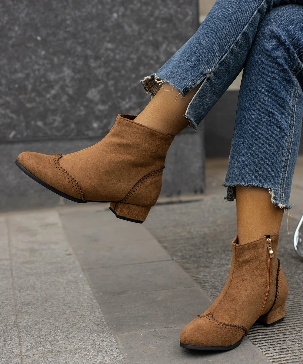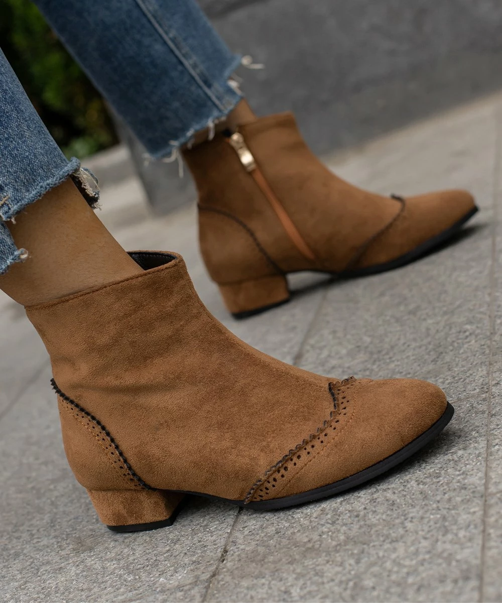 Elevate your footwear collection with these ankle boots featuring secure zip closure and a solid hue.