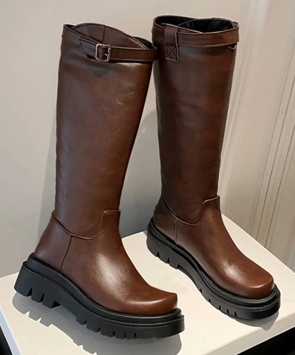 Take on cooler days in these rugged boots featuring textured, skid-resistant rubber soles. Buckled straps accent the tops with edgy allure.