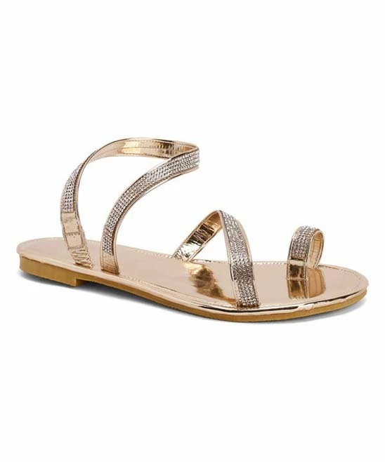 Finish off your ensembles with these sandals featuring straps adorned in rhinestones and a comfortable flat sole.