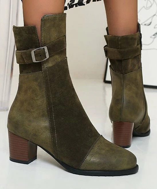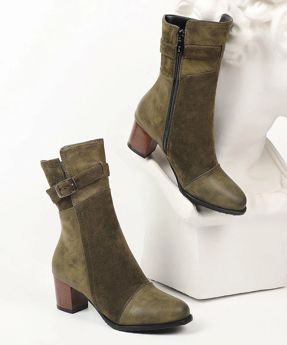 Showing off contrasting panels in tonal hues, this lifted boot brings contemporary chicness to footwear collections.