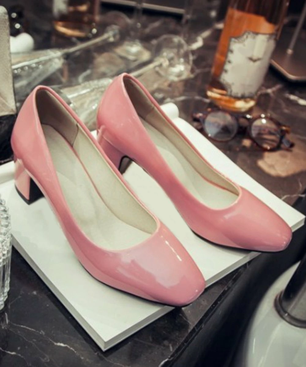 Supply your smart-casual ensembles with a timeless finish when you slip on this shiny patent pump that adds a gentle rise to your ensemble with its block heel.