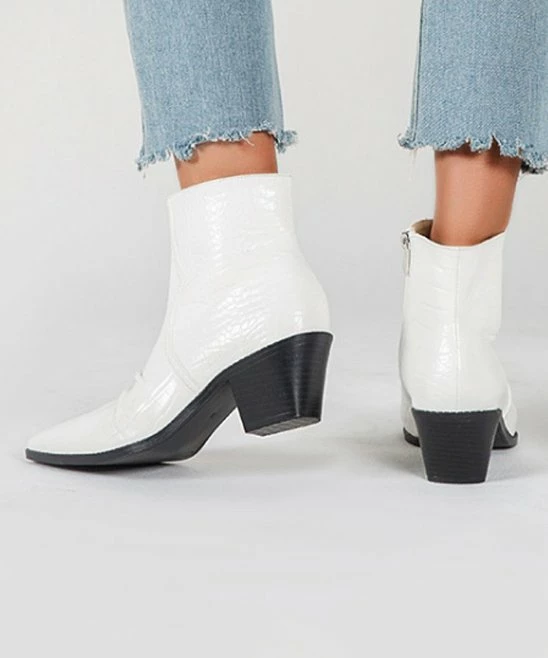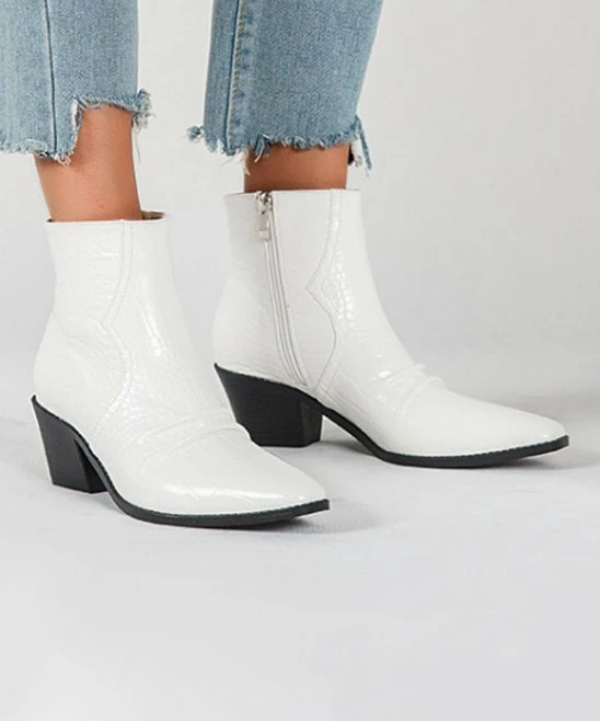 Pointed-toe ankle boot features side zip closure and slight ruching on the upper.