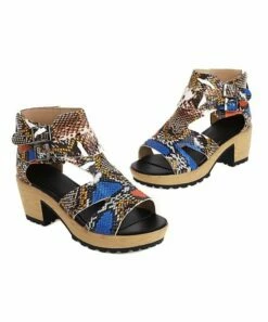 Best deal ๐งจ BUTITI Brown Snake Ankle-Buckle Block-Heel Platform ๐ฉด Sandal – ๐ฉ Women ๐